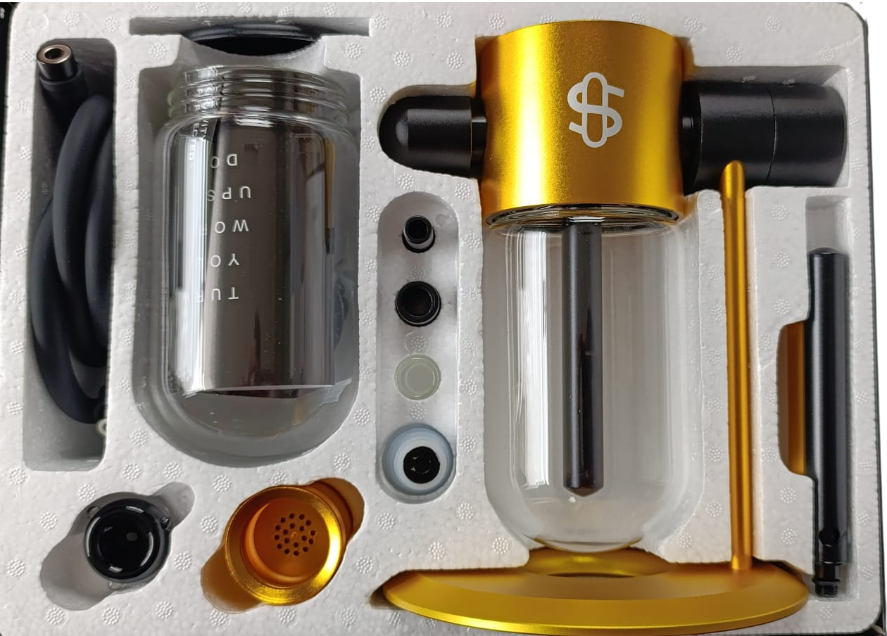 Zaprojektowany z myślą o wszechstronności, Stündenglass Gravity Infuser to kompletny zestaw, który zawiera aluminiową cybuch i szklany wkład, ale można go również podłączyć do dowolnego urządzenia do palenia lub waporyzacji z 14-milimetrowym złączem męskim. Wykorzystując wyłącznie fizykę płynów, stały strumień dymu jest dostarczany przez ustnik z regulacją 45°, zapewniając całkowicie bezkontaktowe spożycie.
